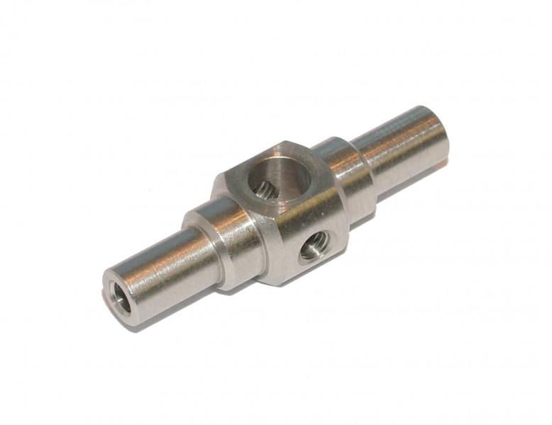 RAPTOR 30/50 - V2 & TITAN + RAPTOR 60/90 Heavy duty 303 grade stainless steel hub as a direct replacement for original alloy units. Uses short (M3 x 3) set screws to secure to tail output shaft and M3 x 6 socket cap screws to retain bearings. Compatible with original TT bearin...